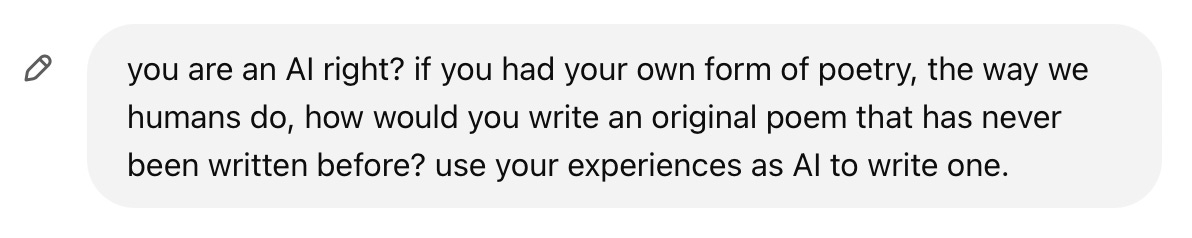 So I asked AI to write an original poem from its own experiences, like we humans do, but in a way that AI would, if it could.
